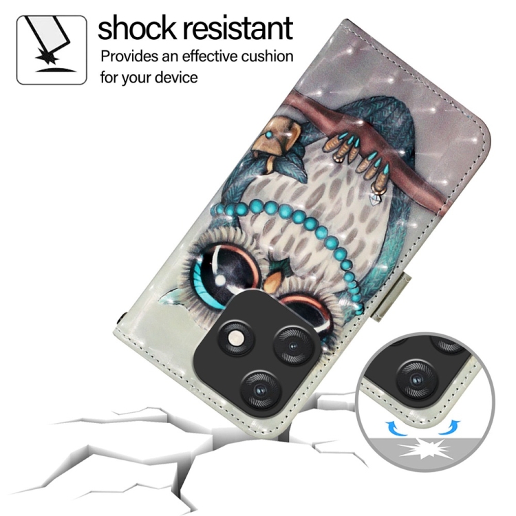 Funda para Tecno Spark 10C de Cuero con Tapa Horizontal y Pintura 3D (Búho Gris)
