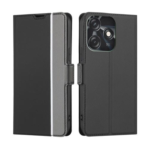 Funda de Cuero para Tecno Spark 10C con Textura Twill y Hebilla Lateral (Negro)