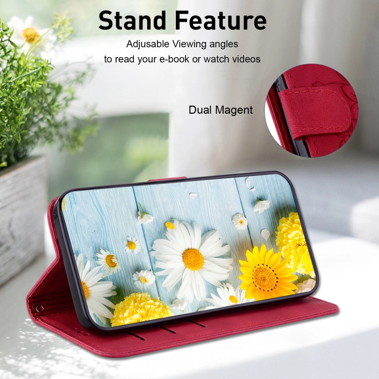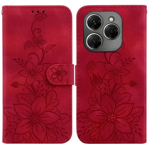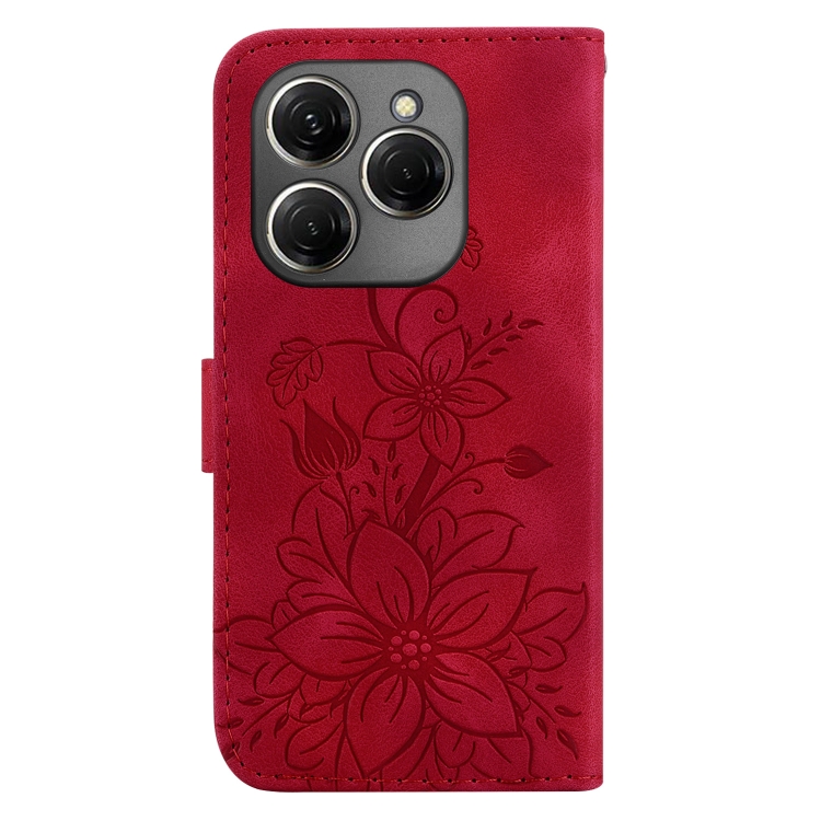 Funda de Cuero en Relieve para Tecno Spark 20 Lily (Rojo)