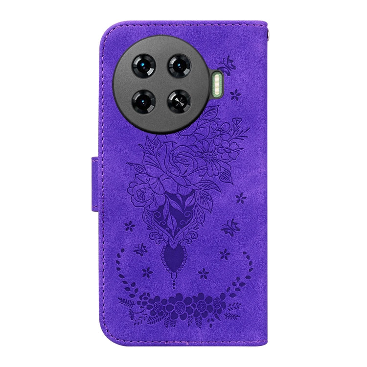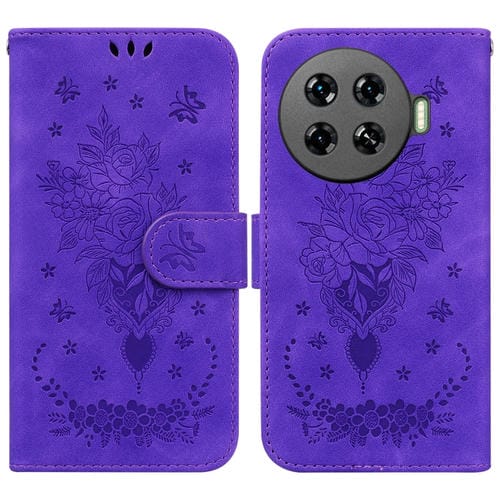 Funda de Cuero para Tecno Spark 20 Pro + 4G Butterfly Rose en Relieve (Púrpura)