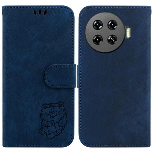 Funda de Cuero para Tecno Spark 20 Pro+ 4G con Relieve Little Tiger (Azul Oscuro)