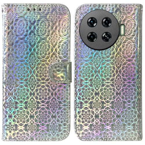 Funda de Cuero para Tecno Spark 20 Pro+ 4G con Hebilla Magnética Colorida (Plata)