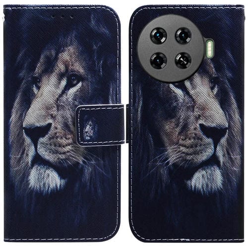 Funda de Teléfono Cuero para Tecno Spark 20 Pro+ 4G con Tapa y Dibujo León