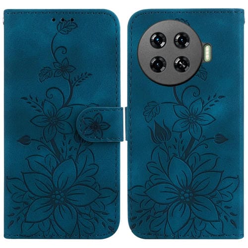 Funda de Cuero para Tecno Spark 20 Pro+ 4G Lily en Relieve (Azul Oscuro)
