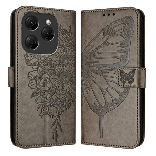 Funda de Cuero para Tecno Spark 20 Pro con Mariposa en Relieve (Gris)