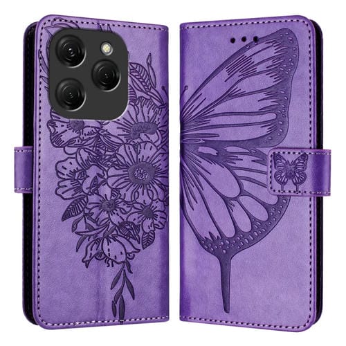 Funda de Cuero para Tecno Spark 20 Pro con Mariposa En Relieve (Púrpura Claro)