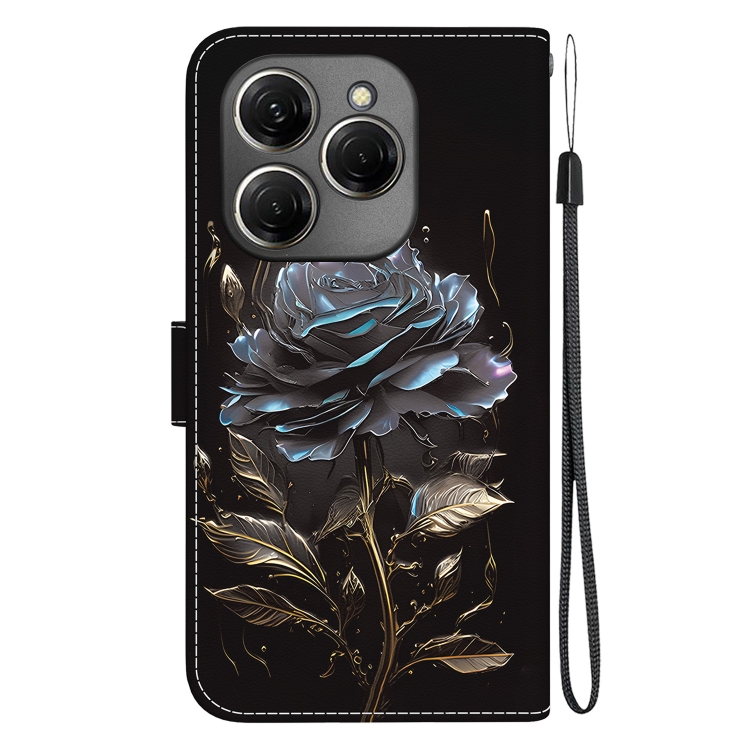 Funda de Cuero para Tecno Spark 20 Pro con Dibujo Coloreado y Textura de Cristal (Rosa Negra)