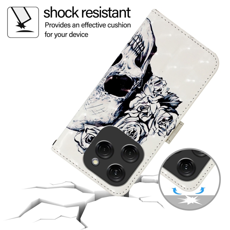 Funda de Cuero para Tecno Spark 20 Pro con Tapa Horizontal y Pintura 3D (Calavera)