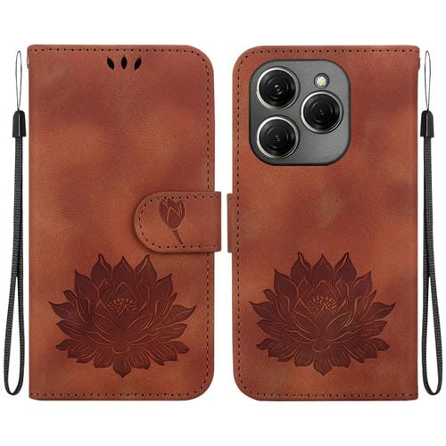Funda de Cuero para Tecno Spark 20 Pro Lotus en Relieve (Marrón)