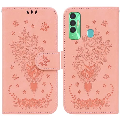 Funda para Tecno Spark 7P Butterfly Rose Foothip en Relieve de Cuero (Rosa)