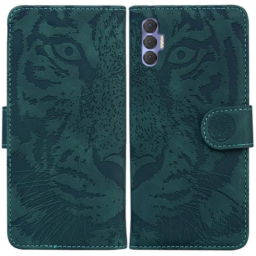 Funda Flip para Tecno Spark 8P Tiger con Patrón en Relieve Horizontal (Verde)