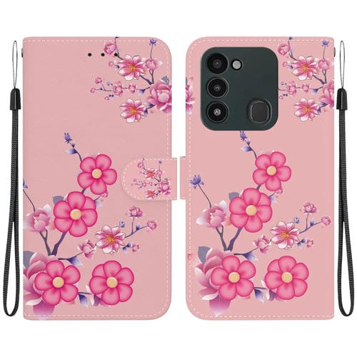 Funda para Tecno Spark Go 2022 / 8C de Cuero con Dibujo Coloreado y Textura de Cristal (Flores de Cerezo)