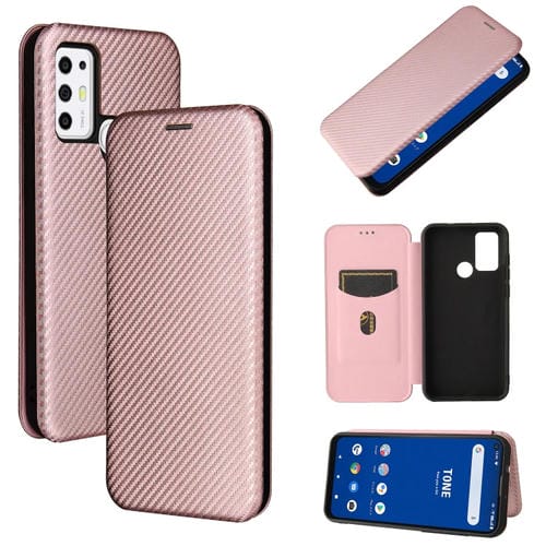 Funda para Tone E21 Fibra de Carbono Textura Magnética Horizontal Flip TPU + PC con Cuero PU y Ranura para Tarjeta (Rosa)