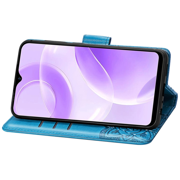 Funda para Ulefone Note 15 de Cuero con Relieve de Flor de Amor y Mariposa (Azul)