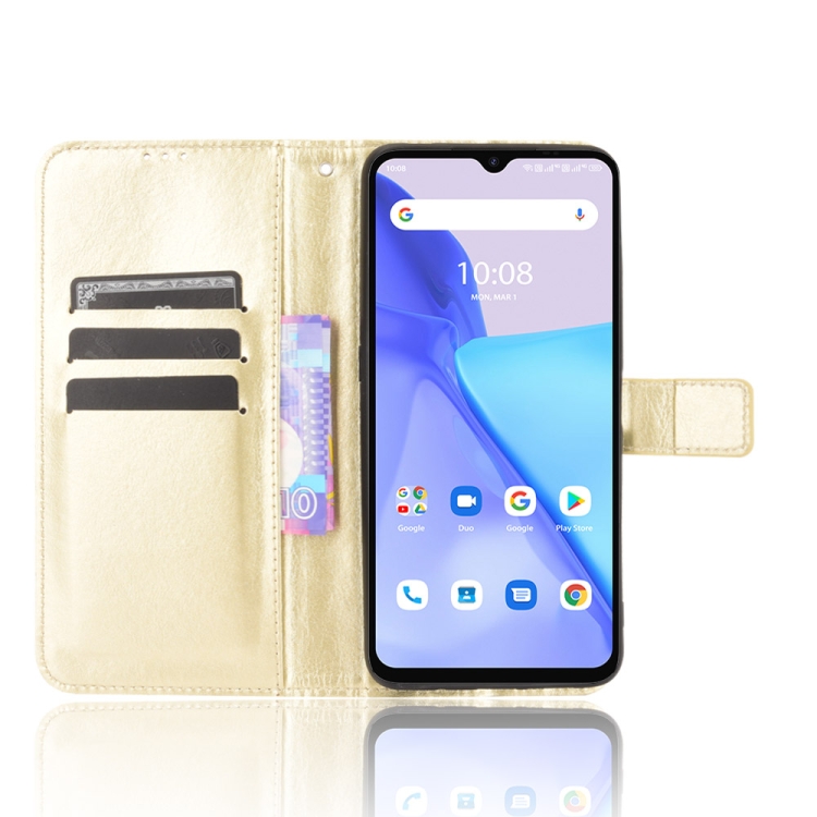 Funda de Cuero para Umidigi Power 5 Crazy Horse Texture con Soporte, Ranuras y Cordón (Oro)