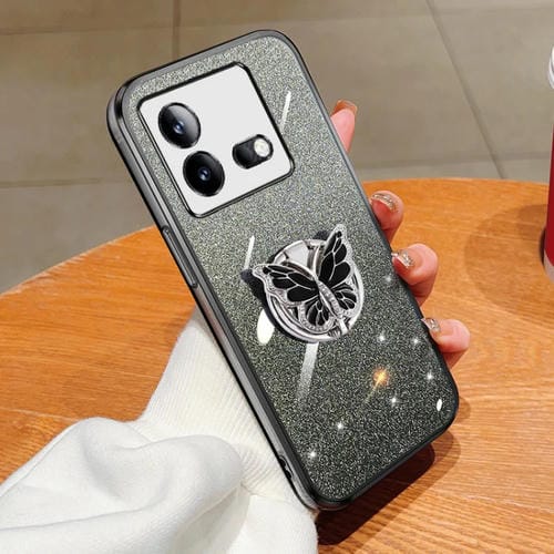 Para Vivo Iqoo Neo8 Funda para Teléfono de TPU con Soporte de Mariposa con Brillo Degradado Plateado (Negro)