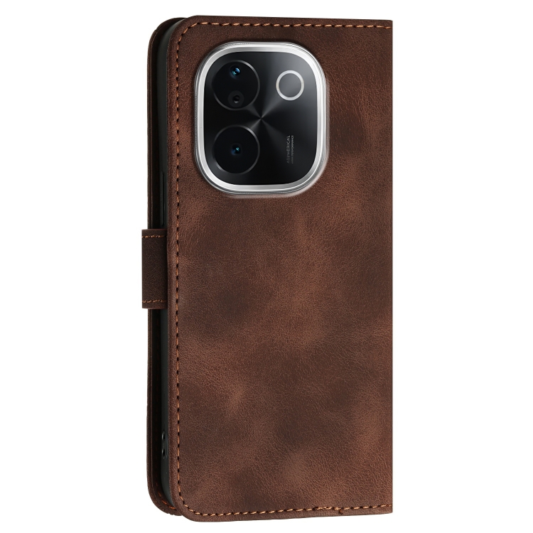 Para Vivo Iqoo Z9S Pro / T3 Pro 5G India Yx0080 Funda de Cuero con Tapa y Patrón En Relieve de Mariposa y Cuadrícula con Cordón (Café)