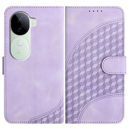 Para Vivo Iqoo Z9S / V40E India Yx0060 Funda de Cuero para Teléfono con Relieve de Cabeza de Elefante y Cordón (Morado Claro)