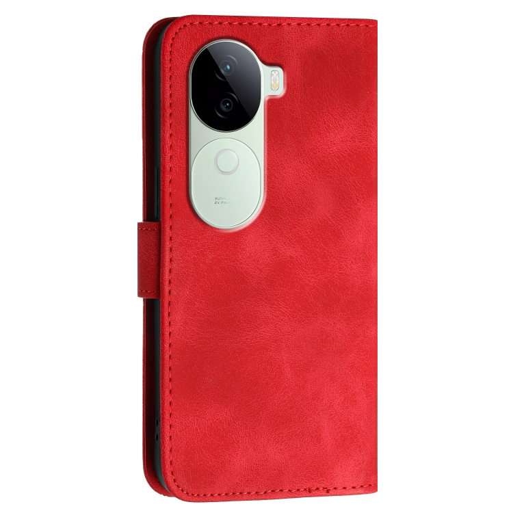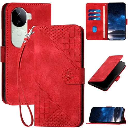 Para Vivo Iqoo Z9S / V40E India Yx0080 Funda de Cuero con Tapa y Patrón En Relieve de Mariposa y Cuadrícula con Cordón (Rojo)