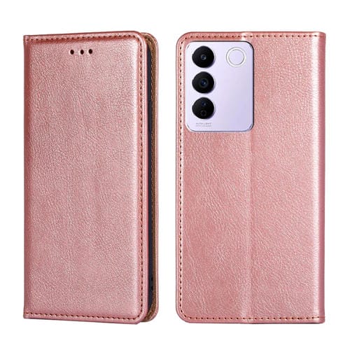 Para Vivo S16E Estuche de Teléfono de Cuero Magnético de Color Sólido con Aceite Brillante (Oro Rosa)