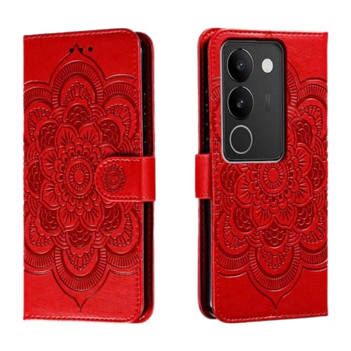 Para Vivo S17 Sun Mandala Funda de Cuero para Teléfono con Patrón En Relieve (Rojo)