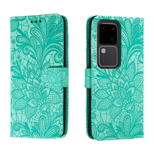 Para Vivo S18 Funda de Cuero con Tapa y Estampado de Flores de Encaje (Verde)