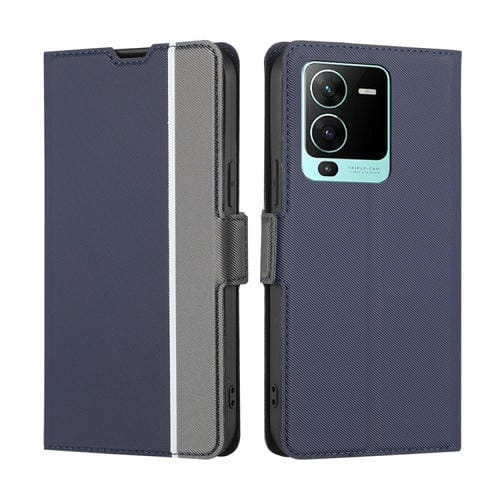 Para Vivo V25 Pro 5G Funda de Cuero con Botón Lateral de Textura de Sarga (Azul)