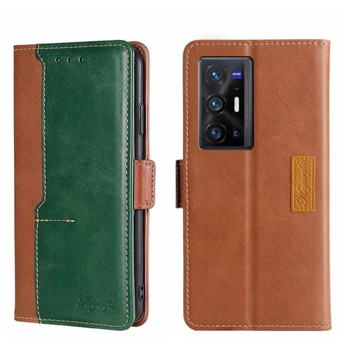 Para Vivo X70 Pro + Contrast Color Side Buckle Leather Case (Marrón Claro + Verde)