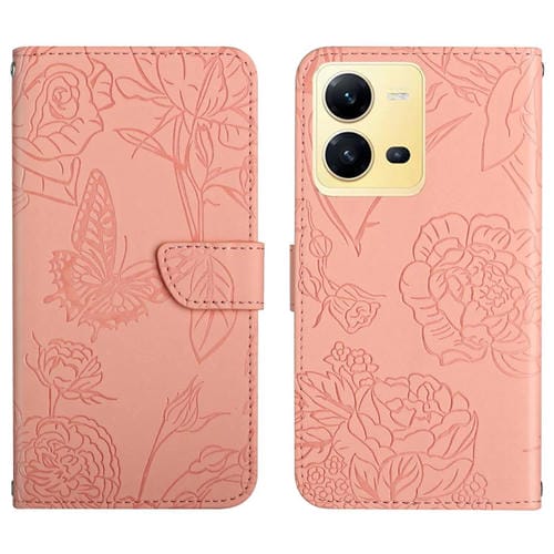 Para Vivo X80 Lite/V25 5G Ht03 Skin Feel Butterfly Funda de Cuero con Tapa En Relieve para Teléfono (Rosa)