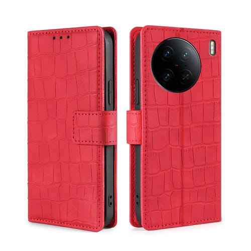 Para Vivo X90 Pro 5G Skin Feel Cocodrilo Cierre Magnético Funda de Cuero para Teléfono (Rojo)
