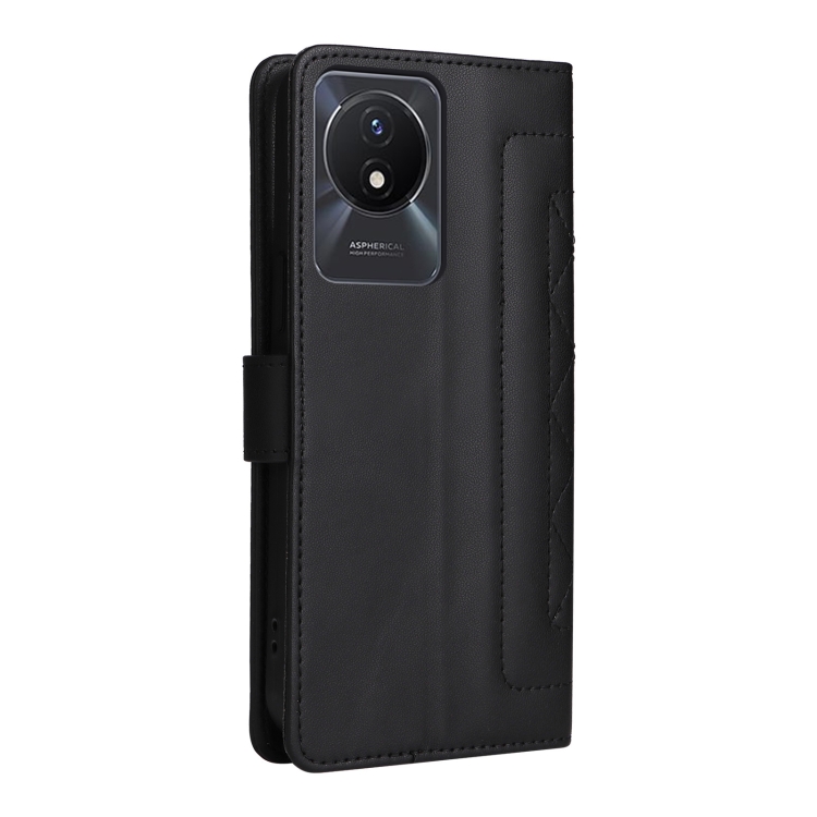 Para Vivo Y02 Diamond Lattice Funda de Cuero para Teléfono con Tapa (Negro)