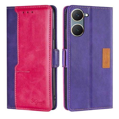 Para Vivo Y03 4G Funda para Teléfono de Cuero con Hebilla Lateral de Color En Contraste (Púrpura + Rojo Rosa)