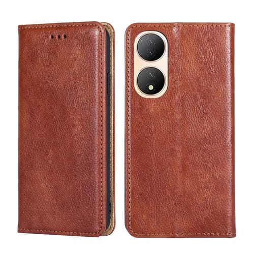 Para Vivo Y100 5G Estuche para Teléfono de Cuero Magnético de Color Sólido con Aceite Brillante (Marrón)