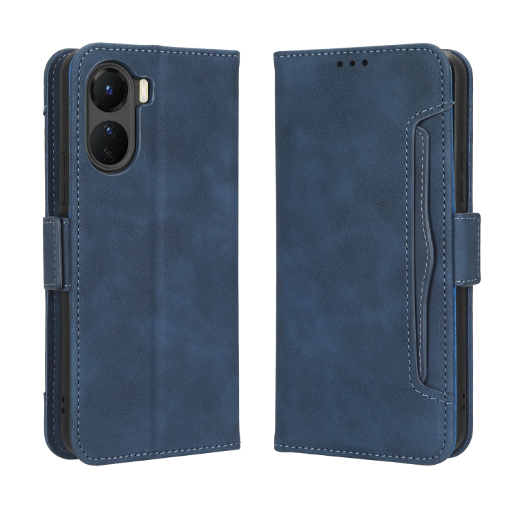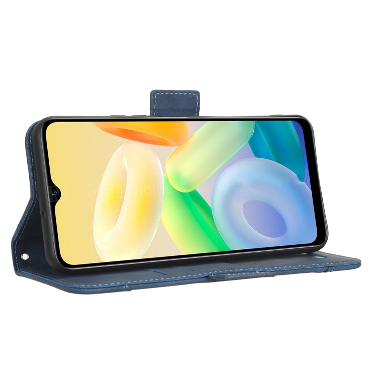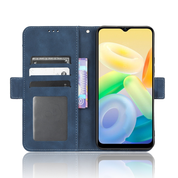 Para Vivo Y16 / Iqoo Z7I Skin Feel Becerro Textura Ranuras para Tarjetas Funda de Cuero para Teléfono (Azul)