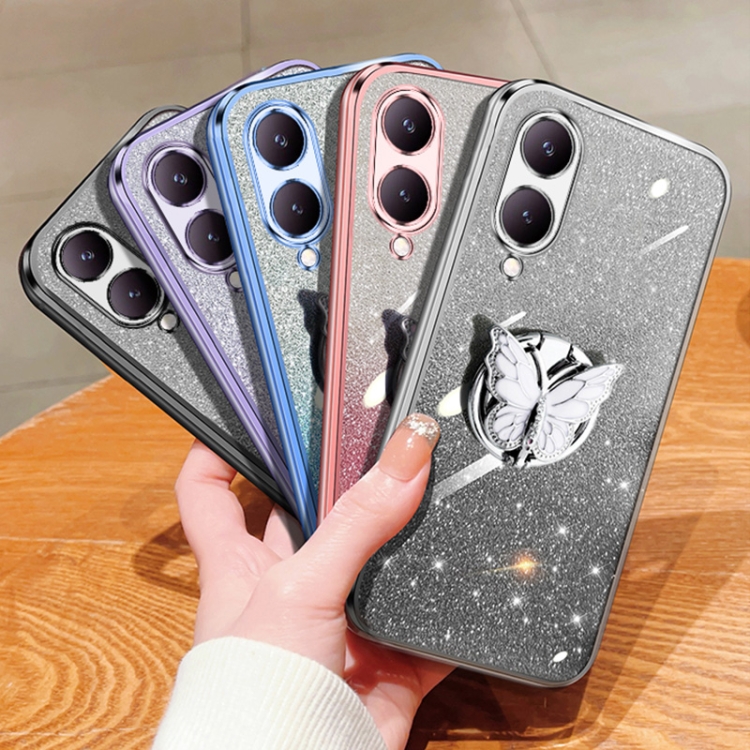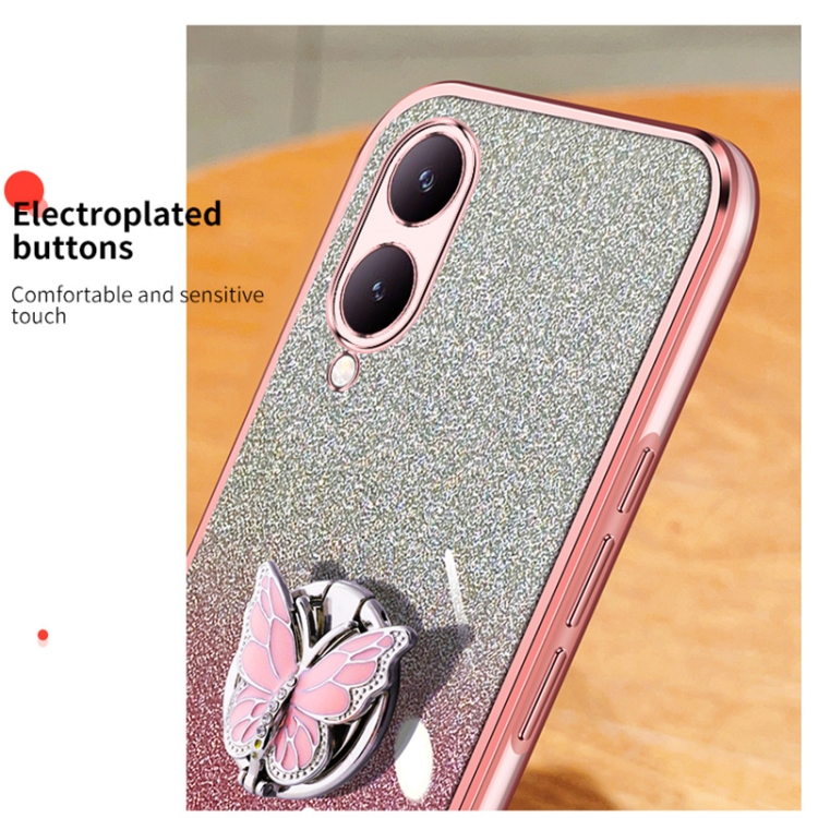 Para Vivo Y17S Funda para Teléfono de TPU con Soporte de Mariposa con Brillo Degradado Plateado (Plata)
