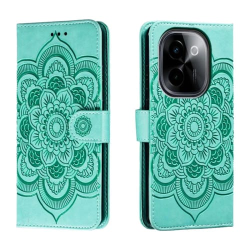 Para Vivo Y200 5G Sun Mandala Funda de Cuero para Teléfono con Patrón En Relieve (Verde)