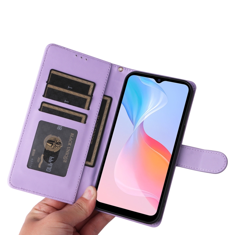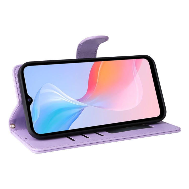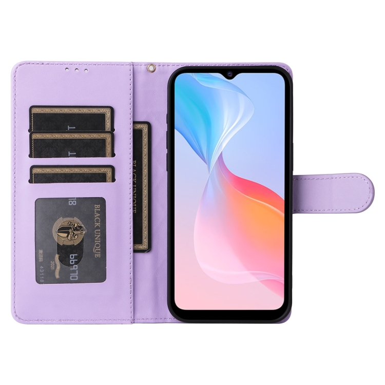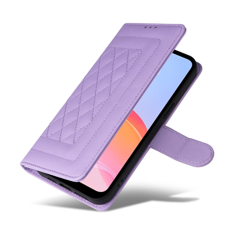 Para Vivo Y21 / Y33S Funda para Teléfono con Tapa de Cuero con Entramado de Diamantes (Púrpura Claro)