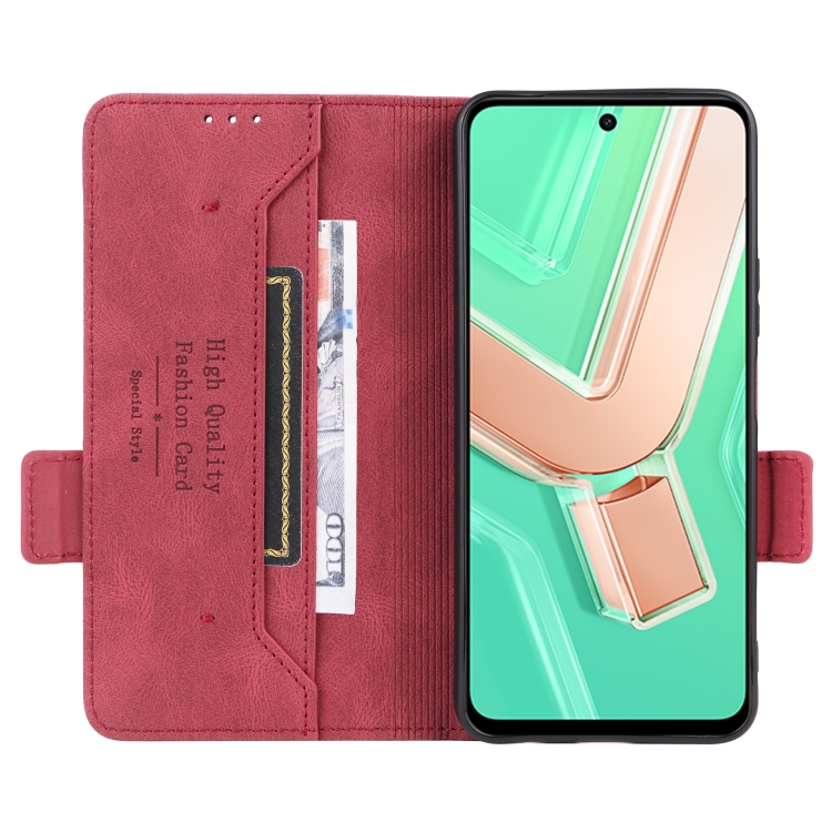 Para Vivo Y28 4G Funda de Cuero para Teléfono con Cierre Magnético (Rojo)