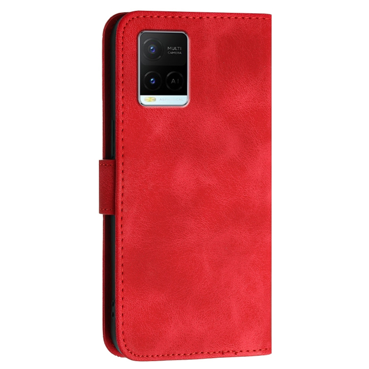 Para Vivo Y33S 4G Global Yx0080 Grid Butterfly Patrón En Relieve Funda de Cuero con Tapa para Teléfono con Cordón (Rojo)