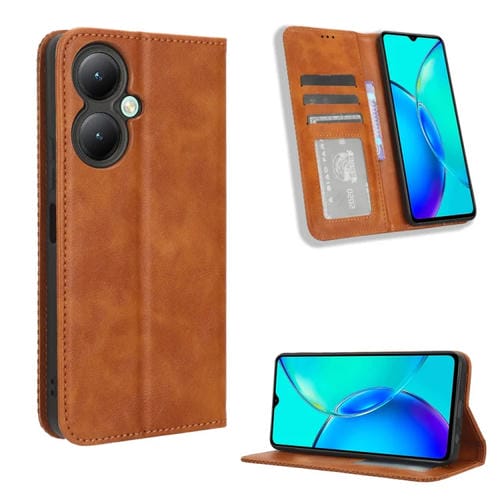 Para Vivo Y35 + 5G Hebilla Magnética Textura Retro Funda de Cuero para Teléfono (Marrón)