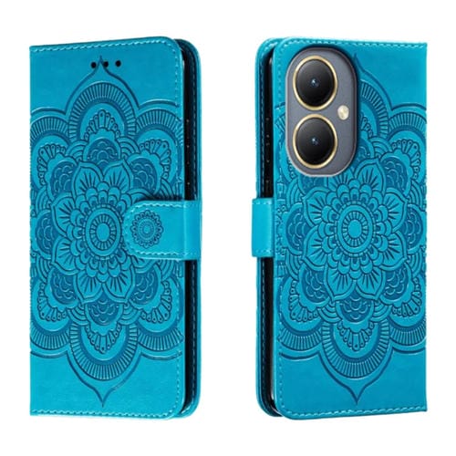 Para Vivo Y35M + Sun Mandala Funda de Cuero para Teléfono con Patrón En Relieve (Azul)