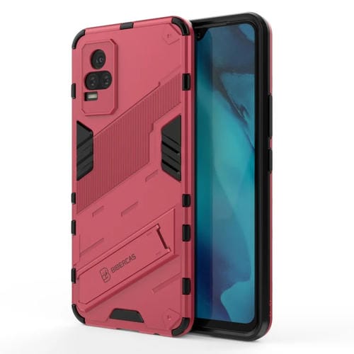 Para Vivo Y37 / V21E 4G Punk Armor 2 En 1 PC + Funda a Prueba de Golpes TPU con Titular Invisible (Rojo Claro)