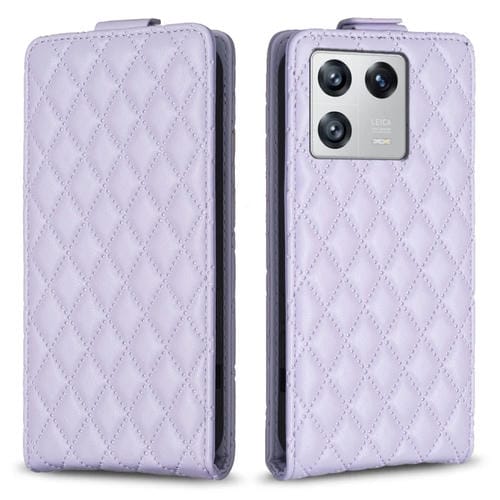 Para Xiaomi 13 Diamond Lattice Funda de Cuero con Tapa Vertical para Teléfono (Púrpura)