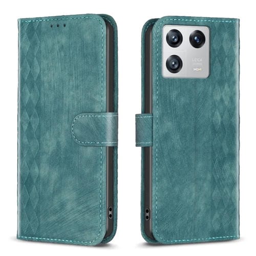 Para Xiaomi 13 Estuche para Teléfono de Cuero En Relieve a Cuadros (Verde)