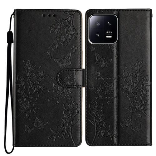 Para Xiaomi 13 Funda de Cuero para Teléfono con Mariposas y Flores (Negro)
