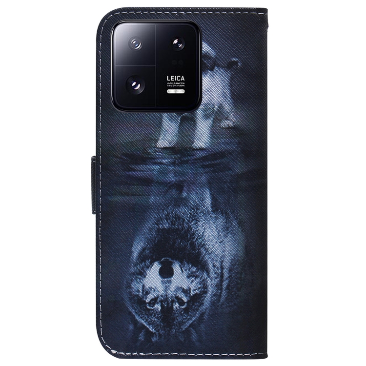 Para Xiaomi 13 Pro 5G Estuche de Teléfono de Cuero con Tapa de Dibujo Coloreado (Lobo y Perro)