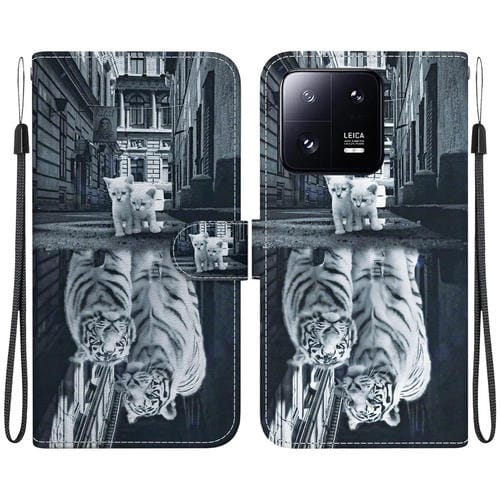 Para Xiaomi 13 Pro 5G Funda de Teléfono de Cuero con Dibujo Coloreado con Textura de Cristal (Reflejo de Tigre Gato)
