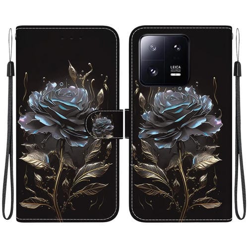 Para Xiaomi 13 Pro 5G Funda de Teléfono de Cuero con Dibujo Coloreado con Textura de Cristal (Rosa Negra)