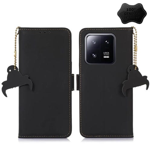 Para Xiaomi 13 Pro Estuche de Teléfono de Cuero Rfid Magnético de Cuero Genuino (Negro)