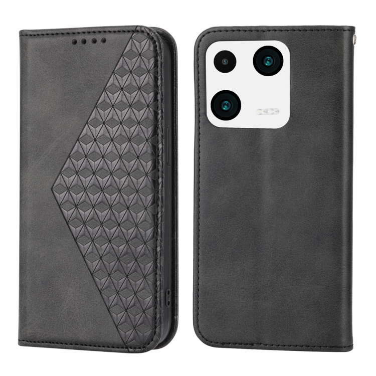Para Xiaomi 13 Pro Funda de Teléfono de Cuero Magnético con Textura de Pantorrilla Cúbica (Negro)